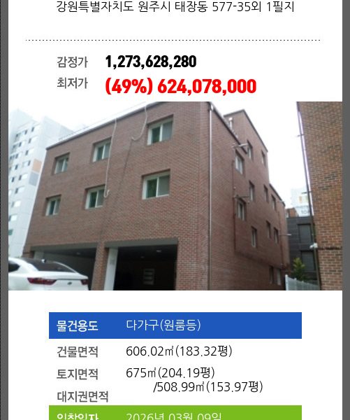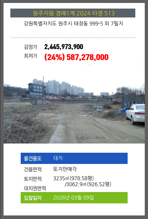 원주대지경매 원주시 태장동 999-5 외 7필지 №2024 타경 513
