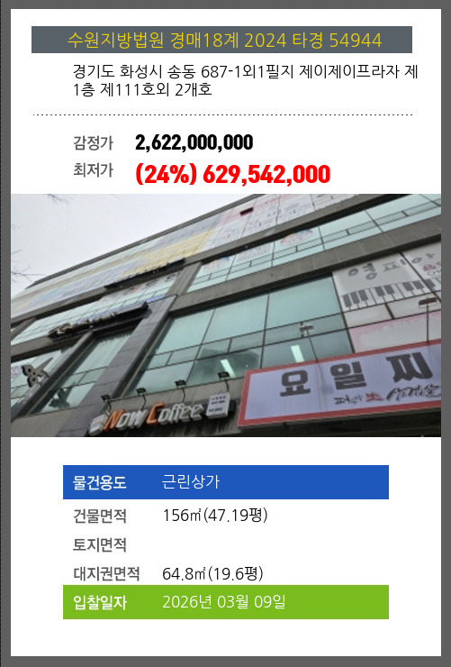 본건은 경기도 화성시 송동 687-1외1필지 제이제이프라자 제1층 제111호외 2개호