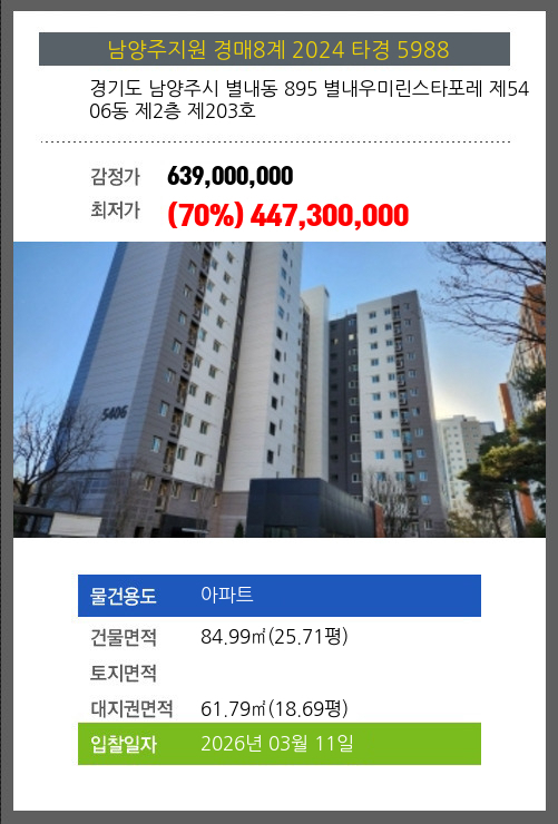 본건은 경기도 남양주시 별내동 895 별내우미린스타포레 제5406동 제2층 제203호