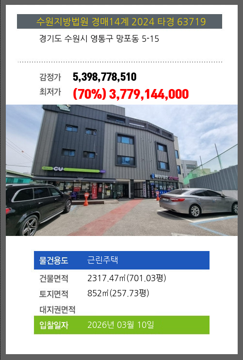 수원주택경매 수원시 영통구 망포동 5-15 №2024 타경 63719