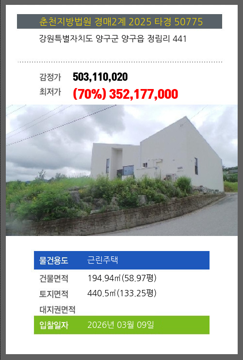양구주택경매 양구군 양구읍 정림리 441 №2025 타경 50775