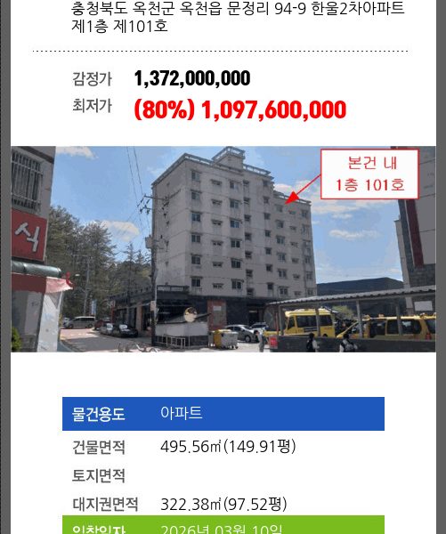 옥천주택경매 옥천군 군북면 증약리 1169 주1동 №2024 타경 11407(2)
