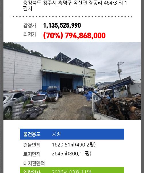 청주시설경매 청주시 상당구 용암동 2626 №2025 타경 51264