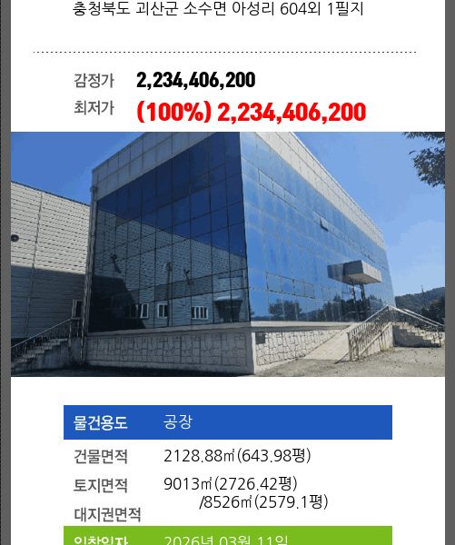 건물면적 2513.04㎡ (760.19평) 채무자 정** 최저가 (49%) 1,455,018,000