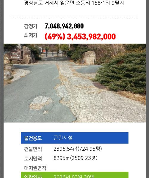 토지면적 2955㎡ (893.88평) 소유자 해** 보증금 (10%) 92,331,300
