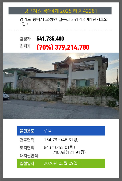 평택주택경매 평택시 오성면 길음리 351-13 제1단지호외 1필지 №2025 타경 42281