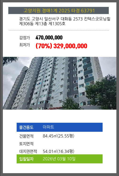 본건은 경기도 고양시 일산서구 대화동 2573 킨텍스굿모닝힐 제306동 제13층 제1305호