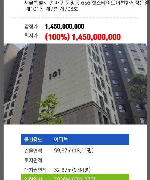 | 용도 | 아파트 | 채권자 | 케** | 감정가 | 3,830,000,000 |