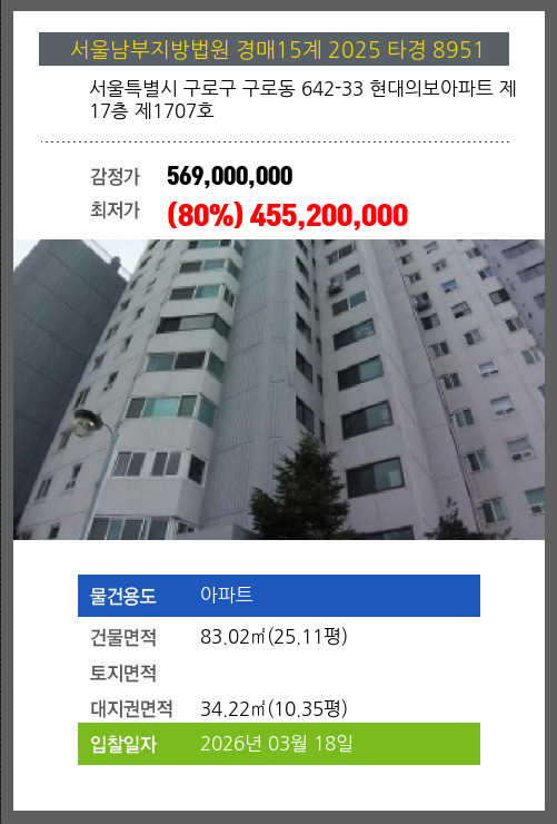 구로아파트경매 구로구 구로동 642-33 현대의보아파트 제17층 제1707호 №2025 타경 8951