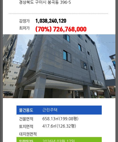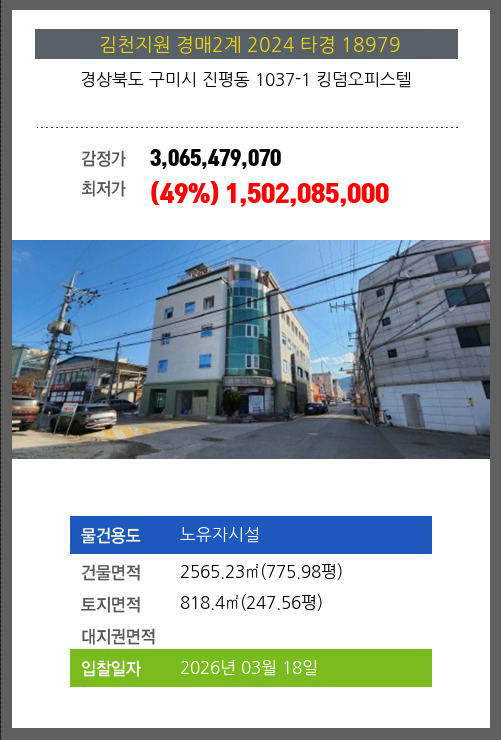 본건은 경상북도 구미시 진평동 1037-1 킹덤오피스텔