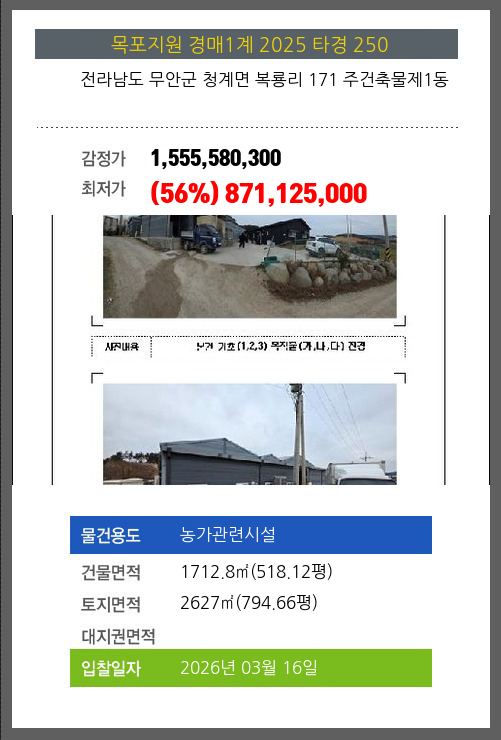 본건은 전라남도 무안군 청계면 복룡리 171 주건축물제1동