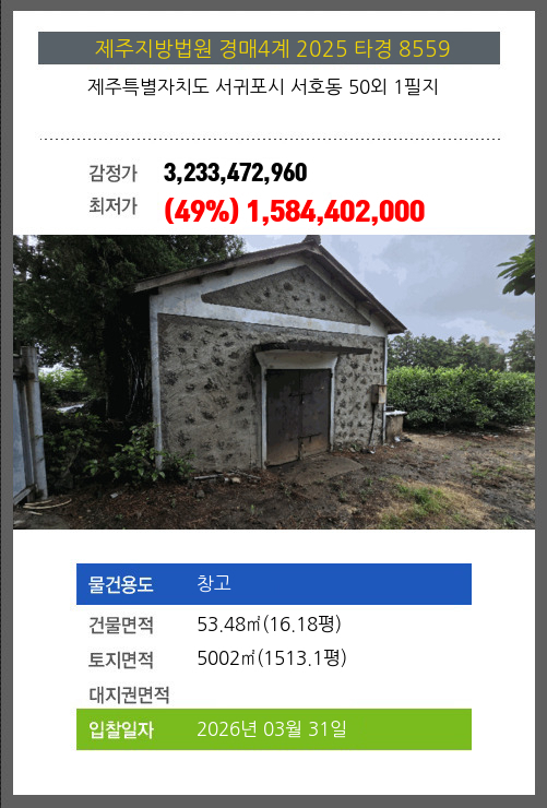 본건은 제주특별자치도 서귀포시 서호동 50외 1필지