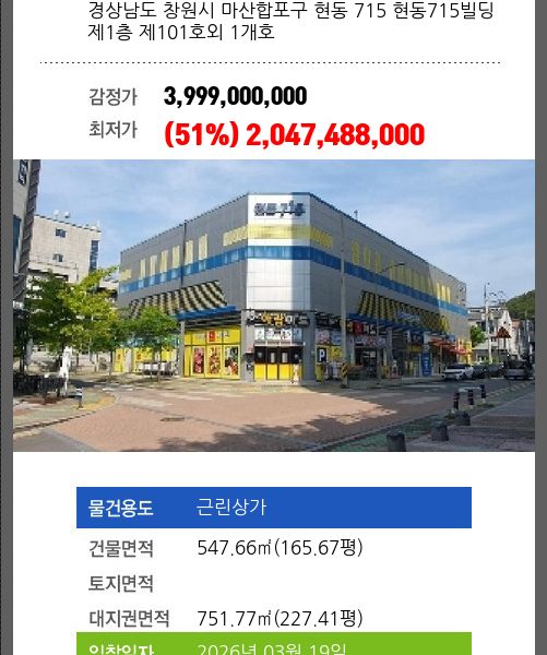 3회 유찰되어 감정가 대비 51%