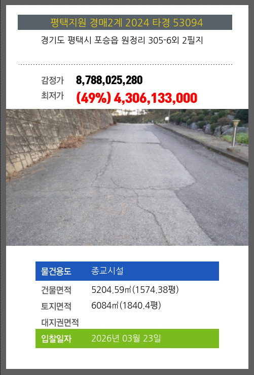 평택종교시설경매 평택시 포승읍 원정리 305-6외 2필지 №2024 타경 53094
