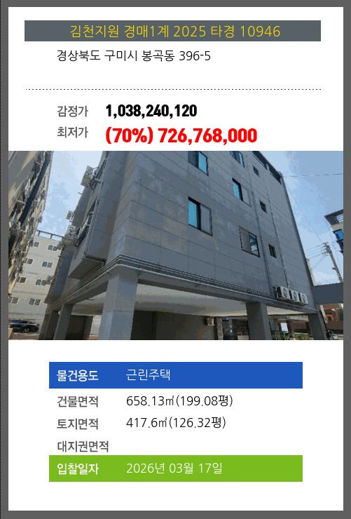 구미주택경매 구미시 봉곡동 396-5 №2025 타경 10946