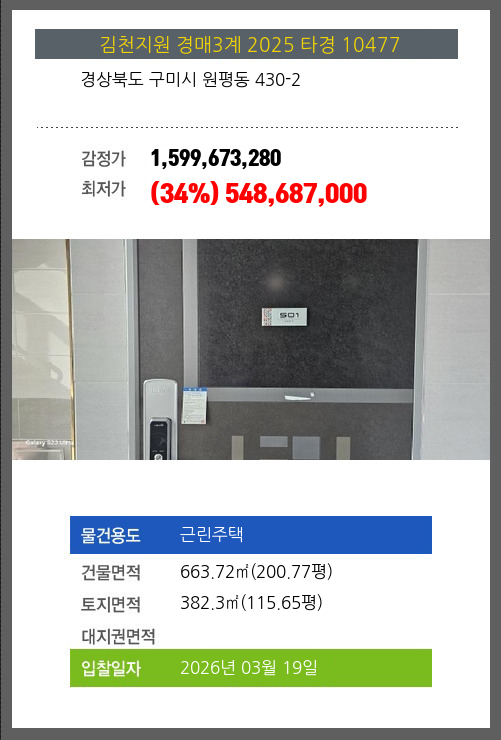 | 용도 | 근린주택 | 채권자 | 삼** | 감정가 | 1,599,673,280 |