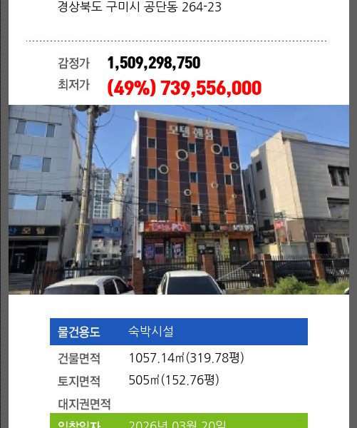 | 건물면적 | 663.72㎡ (200.77평) | 채무자 | 석** | 최저가 | (34%) 548,687,000 |