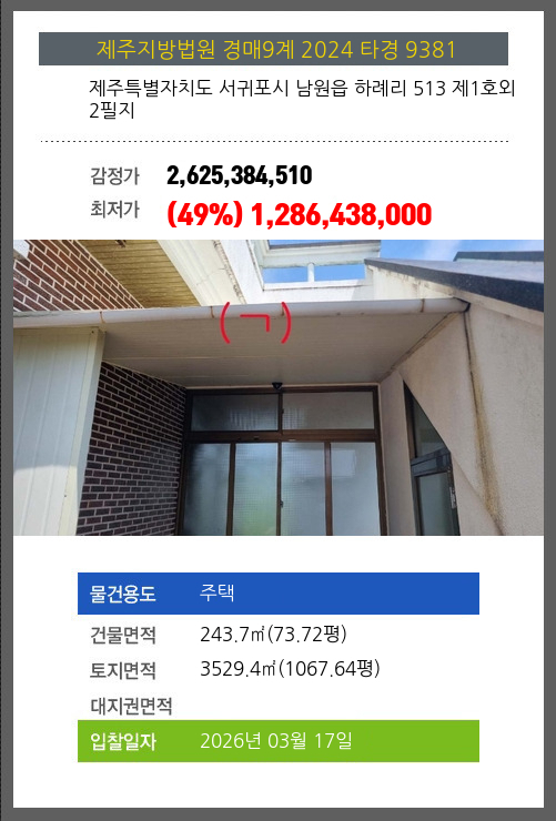 | 신건 | 2025-12-23 | 2,625,384,510 | 유찰 |