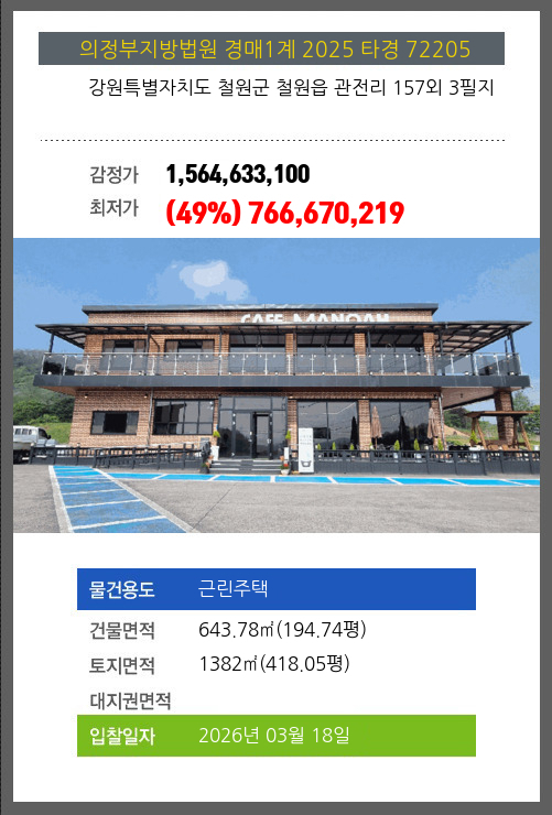 본건은 강원특별자치도 철원군 철원읍 관전리 157외 3필지