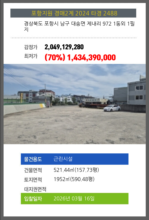 본건은 경상북도 포항시 남구 대송면 제내리 972 1동외 1필지