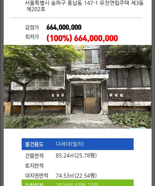 송파빌라경매 송파구 석촌동 150-4 제5층 제501호 №2024 타경 53748