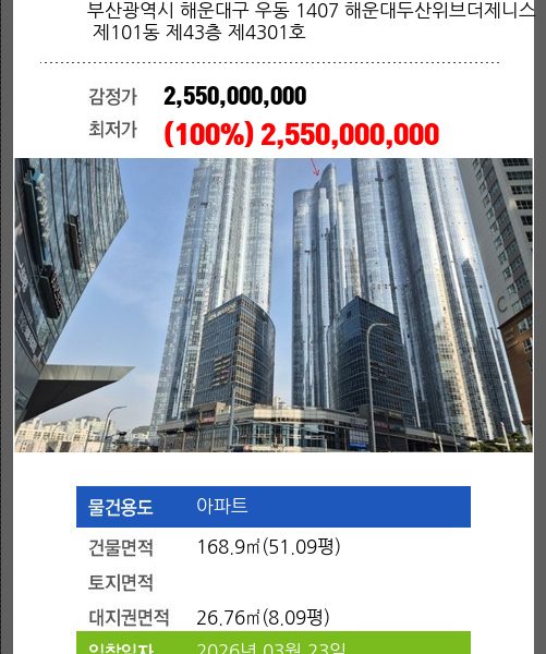 | 신건 | 2026-02-23 | 947,000,000 | 유찰 |