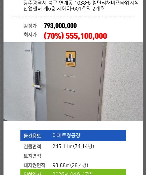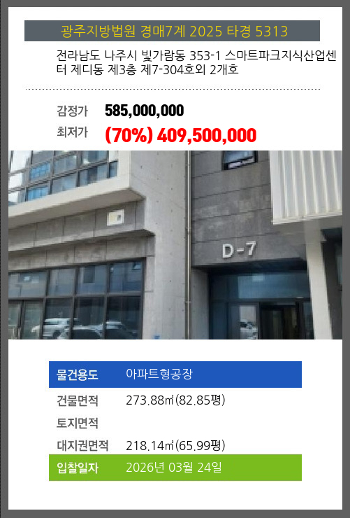 본건은 전라남도 나주시 빛가람동 353-1 스마트파크지식산업센터 제디동 제3층 제7-304호외 2개호