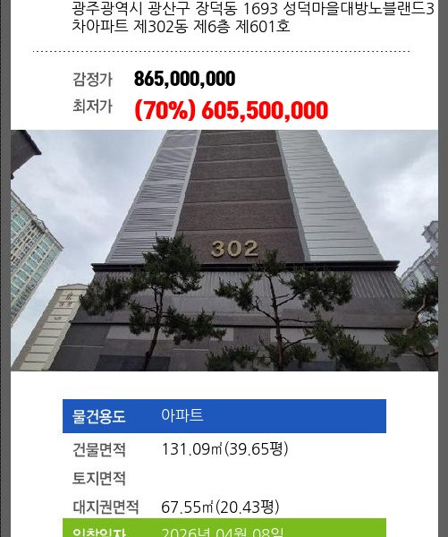 소재지 [지번] 광주광역시 북구 연제동 1038-6 첨단리채비즈타워지식산업센터 제6층 제에이-601호외 2개호