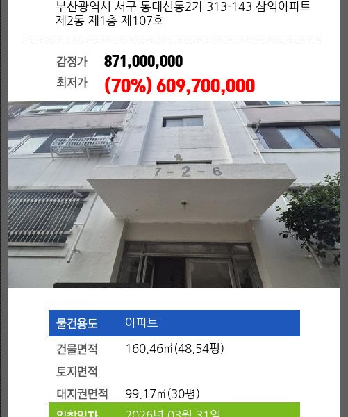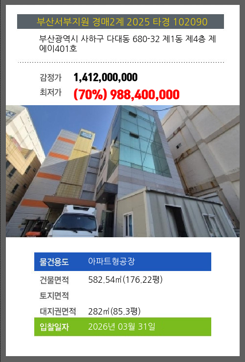 본건은 부산광역시 사하구 다대동 680-32 제1동 제4층 제에이401호