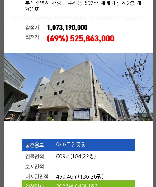 | 용도 | 아파트형공장 | 채권자 | 중** | 감정가 | 1,412,000,000 |