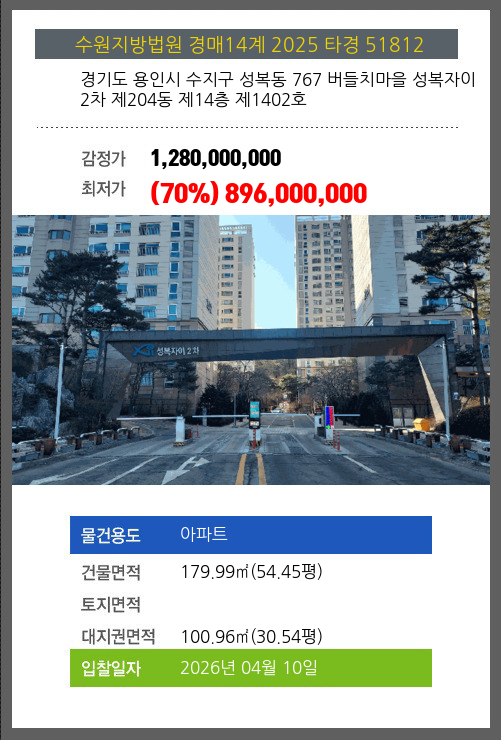 본건은 경기도 용인시 수지구 성복동 767 버들치마을 성복자이2차 제204동 제14층 제1402호