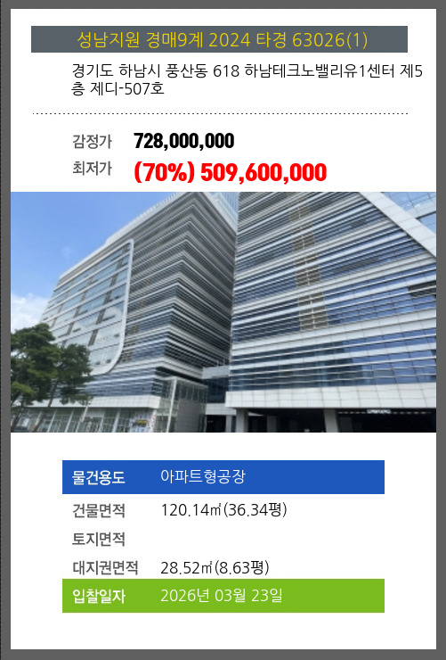 본건은 경기도 하남시 풍산동 618 하남테크노밸리유1센터 제5층 제디-507호
