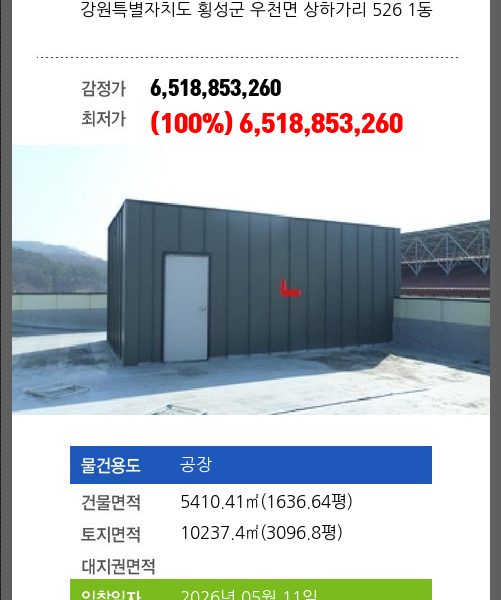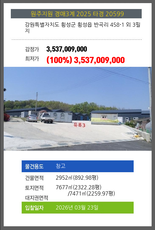 | 소재지 | [지번] 강원특별자치도 횡성군 횡성읍 반곡리 458-1 외 3필지 [도로명 주소] 강원특별자치도 횡성군 횡성읍 광학로 319-6외 3필지 |