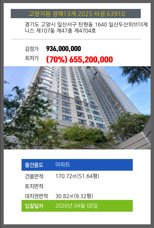 본건은 경기도 고양시 일산서구 탄현동 1640 일산두산위브더제니스 제107동 제47층 제4704호
