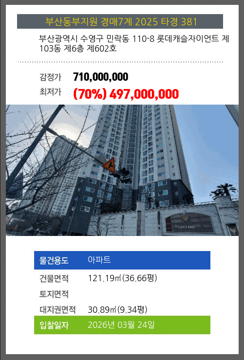 본건은 부산광역시 수영구 민락동 110-8 롯데캐슬자이언트 제103동 제6층 제602호