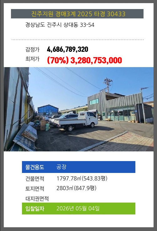 진주공장경매 진주시 상대동 33-54 №2025 타경 30433