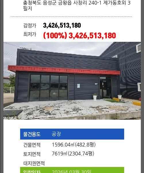 | 용도 | 공장 | 채권자 | 중** | 감정가 | 4,416,449,800 |