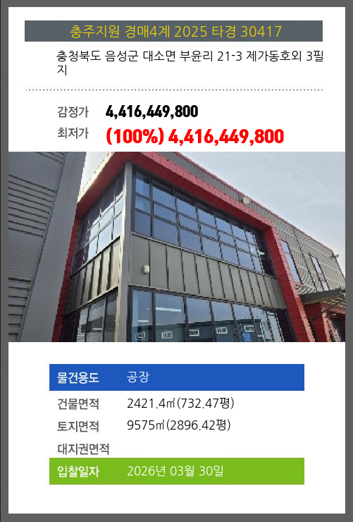 본건은 충청북도 음성군 대소면 부윤리 21-3 제가동호외 3필지