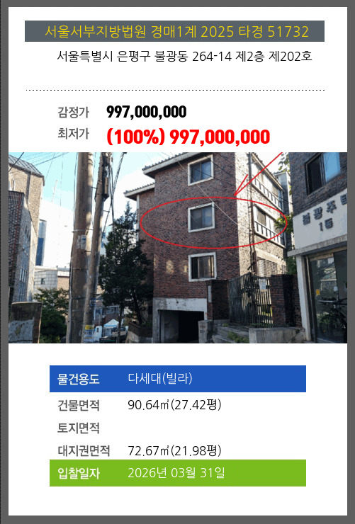 본건은 서울특별시 은평구 불광동 264-14 제2층 제202호
