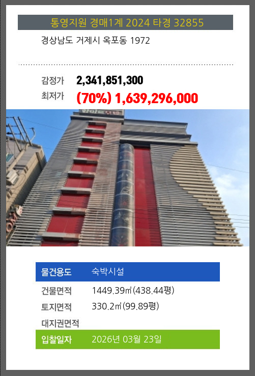 거제숙박시설경매 거제시 옥포동 1972 №2024 타경 32855