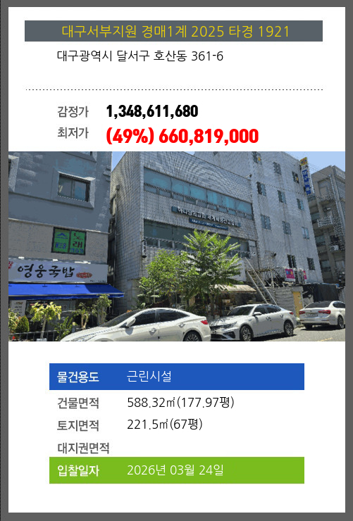 달서시설경매 달서구 호산동 361-6 №2025 타경 1921