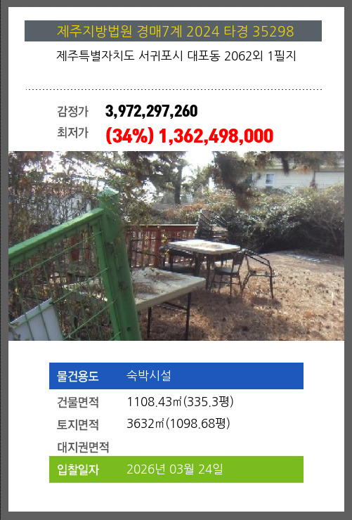 본건은 제주특별자치도 서귀포시 대포동 2062외 1필지
