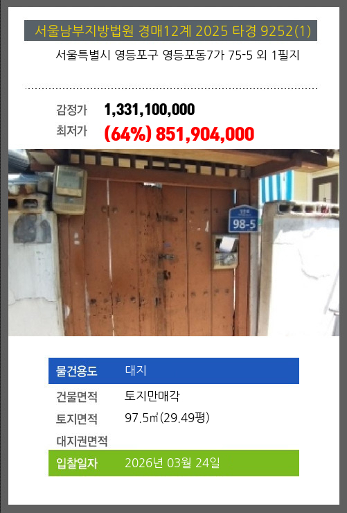 본건은 서울특별시 영등포구 영등포동7가 75-5 외 1필지
