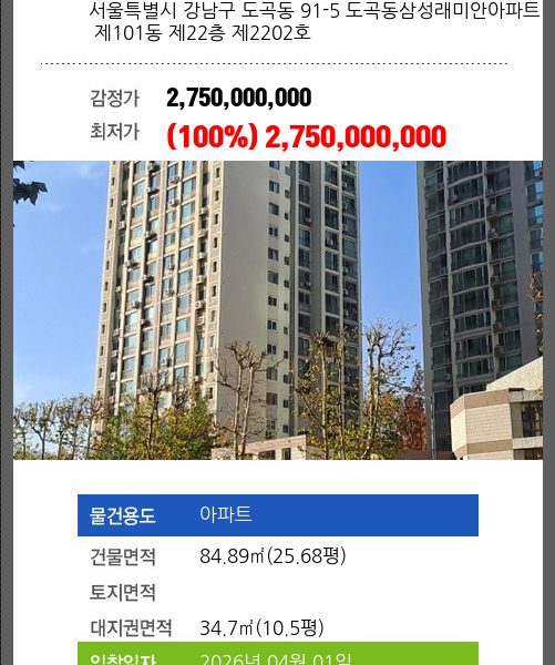 | 매각대상 | 임차권등기 | 경매종류 | 강제경매 | 사건접수일 | 2024-10-07 |