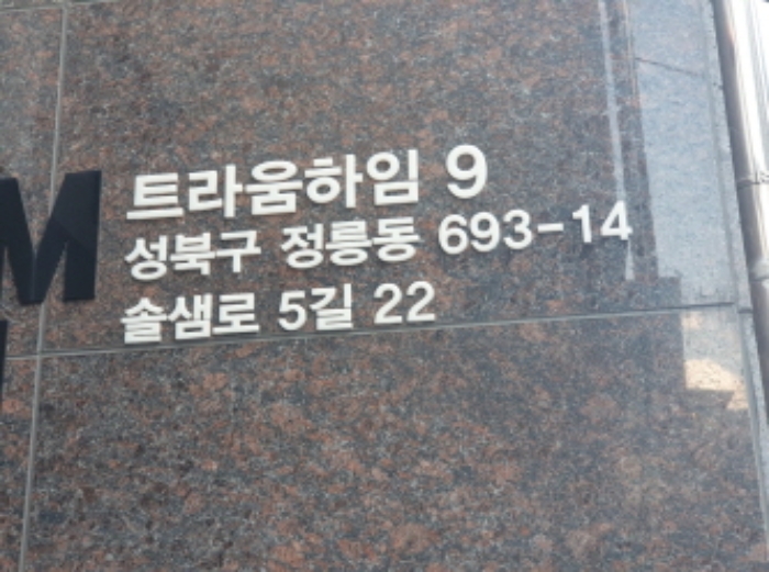 | 소재지 | [지번] 서울특별시 성북구 정릉동 693-14 트라움하임아세움 [도로명 주소] 서울특별시 성북구 솔샘로5길 22 트라움하임아세움 |