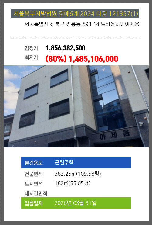 본건은 서울특별시 성북구 정릉동 693-14 트라움하임아세움
