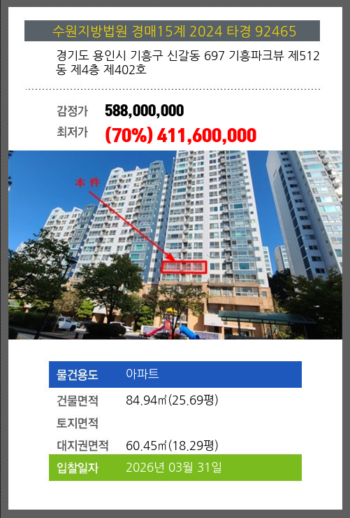 본건은 경기도 용인시 기흥구 신갈동 697 기흥파크뷰 제512동 제4층 제402호