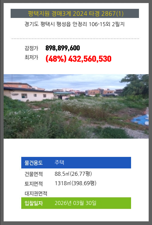 본건은 경기도 평택시 팽성읍 안정리 106-15외 2필지