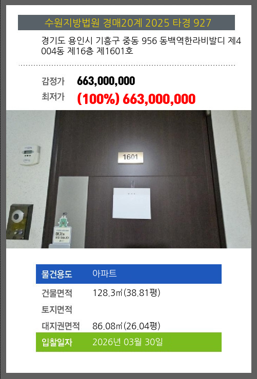 본건은 경기도 용인시 기흥구 중동 956 동백역한라비발디 제4004동 제16층 제1601호