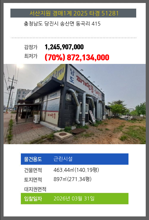 당진시설경매 당진시 송산면 동곡리 415 №2025 타경 51281